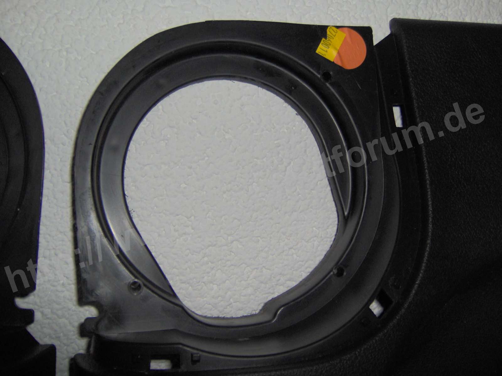 Um den TMT gescheit einzulassen mu? man nicht am Blech arbeiten sondern verwendet DISTANZRINGE !! Desweiteren ist es Notwendig die Ausschnitte der T?r geringf?gig anzupassen, in dem man den Einbauplatz des 13cm Lautsprechers Entfernt und den neuen 16cm Lautsprecher mit dem Distanzring (bei meinem sind es ca 8mm) an dem Original einbauplatz verschraubt. Dann passt auch das LS-Abdeckgitter noch vor und alle sind gl?cklich.