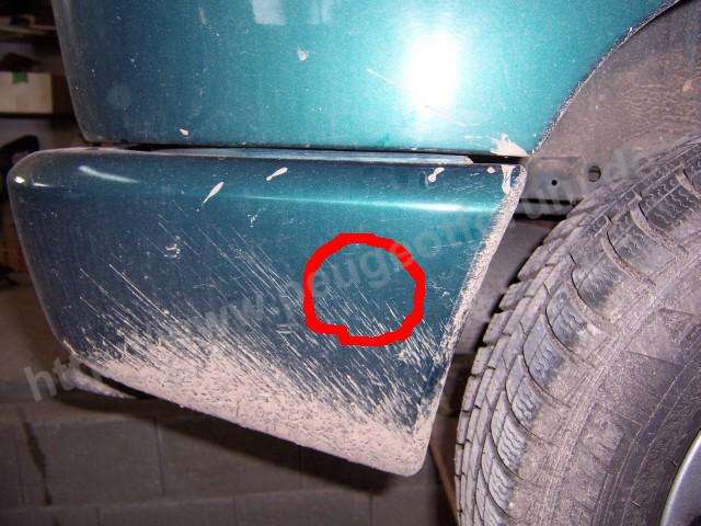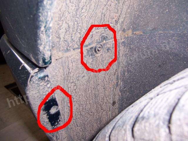 Erst einmal von unten die zwei 10er schrauben l?sen (einmal ?ber dem ESD rohr und einmal ?ber dem Abschlepphaken). Dann die beiden Torx von unten raus schrauben (Hecksch?rzenflanke / Radhausschale)
