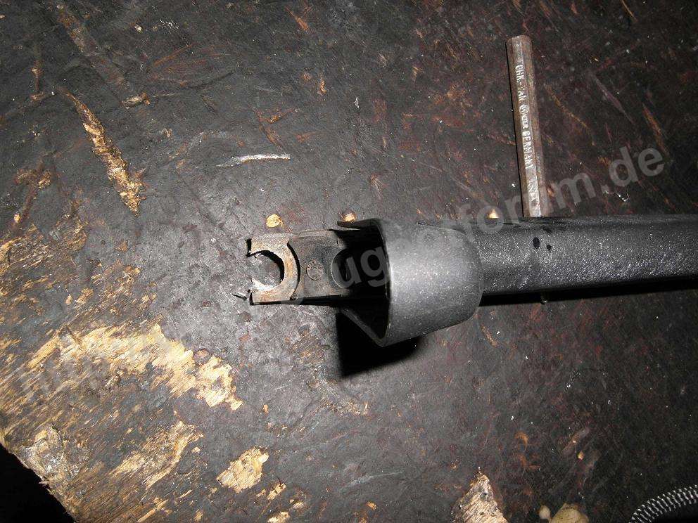 Jetzt seht Ihr auch, warum das mit dem WD40 nicht viel bringt. Die Welle mit Schmirgelpapier abziehen. Das Schmirgelpapier zu einer "Wurst" zusammen rollen und damit die F?hrung in dem Geh?use reinigen. Obacht, es ist ein O-Ring in dem Geh?use. Pult ihn nicht mit dem Schraubendreher raus, der Gummi zerlegt sich sonst in seine Einzelteile. Richtig Abdichten tut der Gummi eh nicht mehr, daher kann auch mit Schmirgelpapier gearbeitet werden.