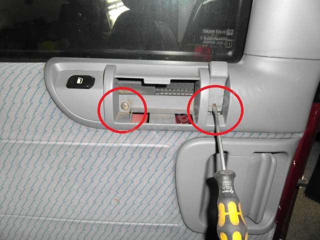 Danach den Aschenbecher der Schiebet?r entfernen. Die Torxschraube da drunter l?sen.
