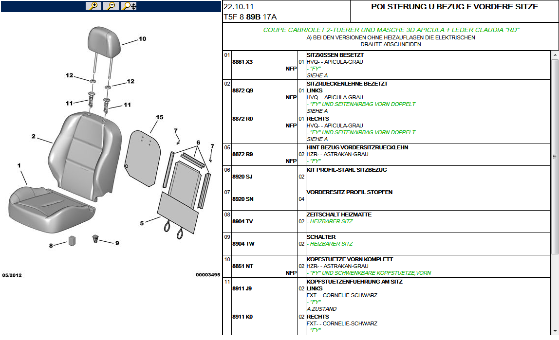 bei Verwerter kein Glück,bei Peugeot Traumpreise,wo finde ich den Nahmen der Polsterung,Farbe egal ich möchte nur die Form wieder erhalten der linken Seite Sitz und Lehne,Foto folgt guten Abend und "schöne" Feiertage Inselmensch