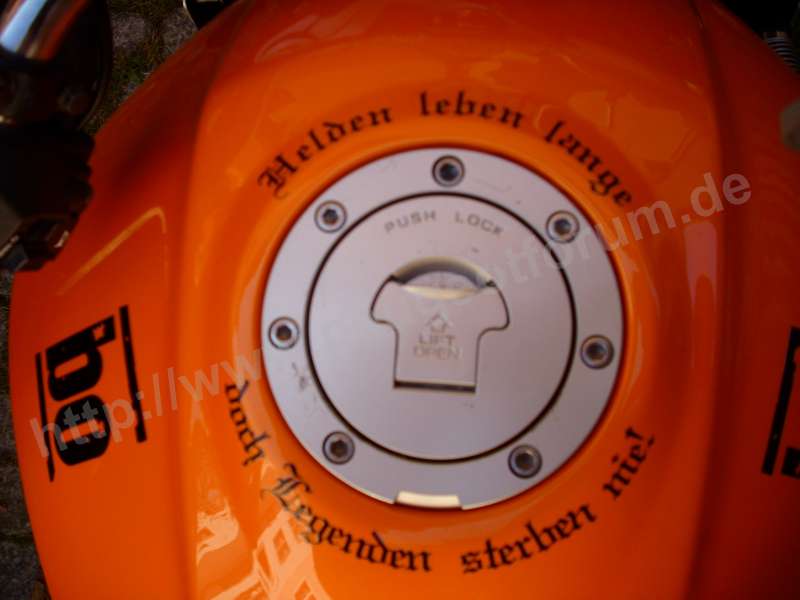 ?berholtes Unfallmotorrad in Ford ST Orange und B?hse Onkelz Schriftz?ge einlackiert... =o)