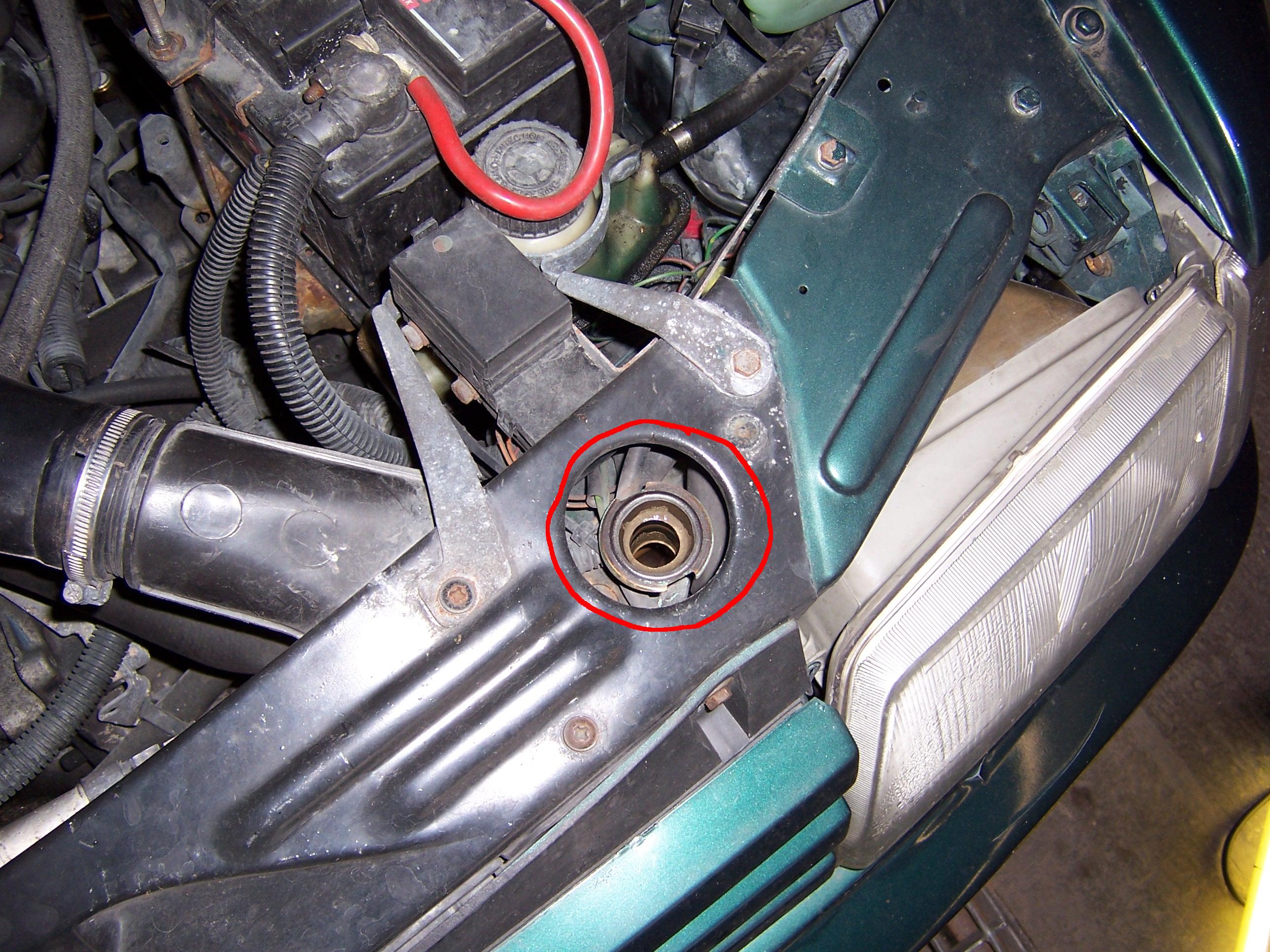 Den neuen Kühler wieder einsetzen. Darauf achten das unten die Führungsbolzen richtigen in den gummiführungen sitzen.