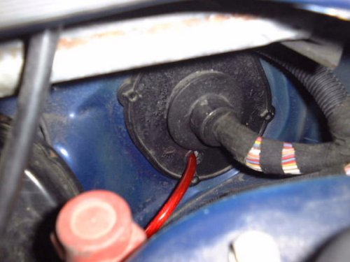nach einbau von endstufe, boxen und radio das kabel am pluspol im sicherungskasten befestigen. je nachdem kann es noch nötig sein, die abdeckung einzuschneiden. das stromkabel innerhalb des wagens im kabelschacht nach hinten legen. vorne könnte es notwendig sein, die schraube der abdeckung zu lösen, damit das stromkabel durchpasst. |