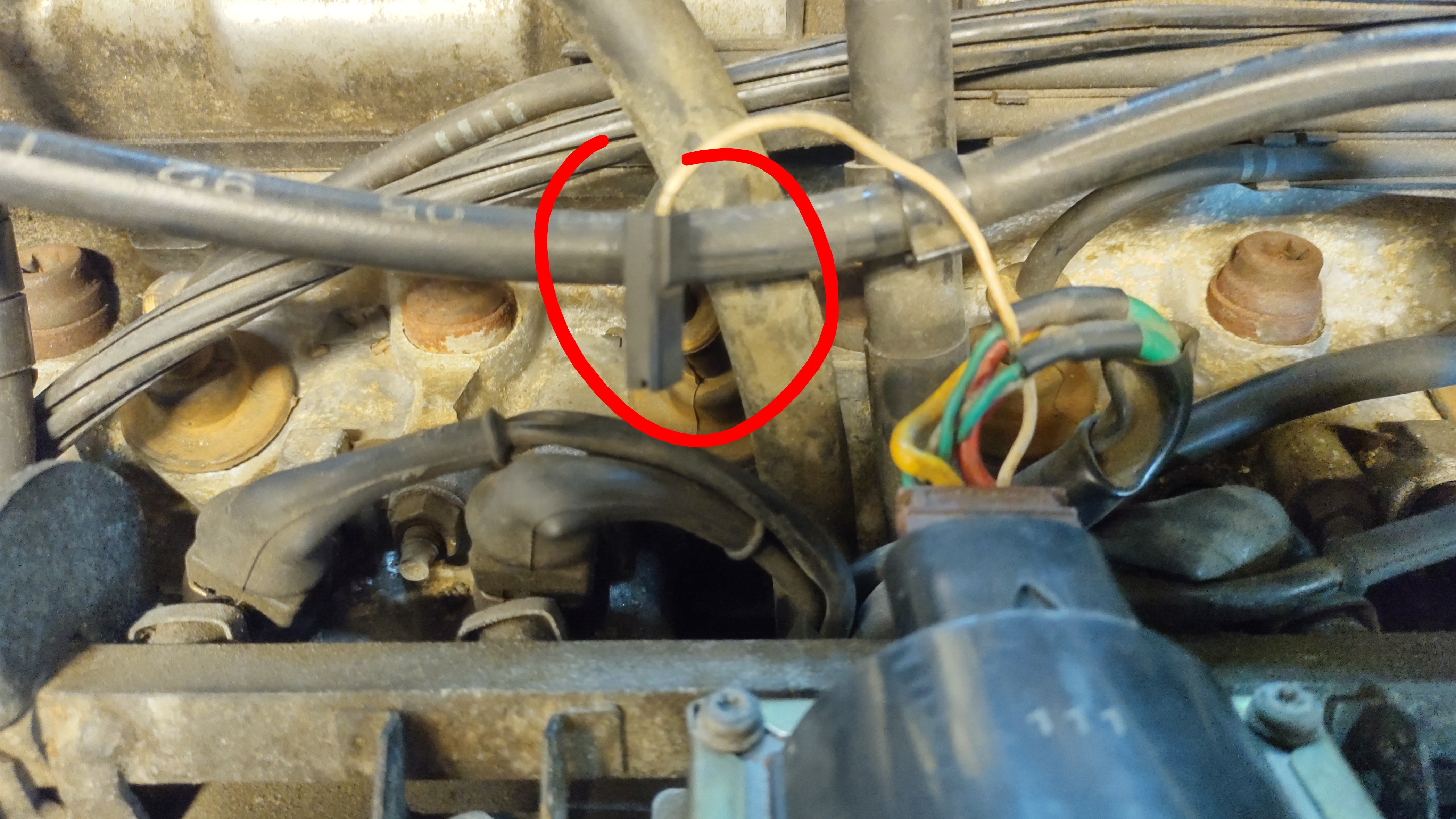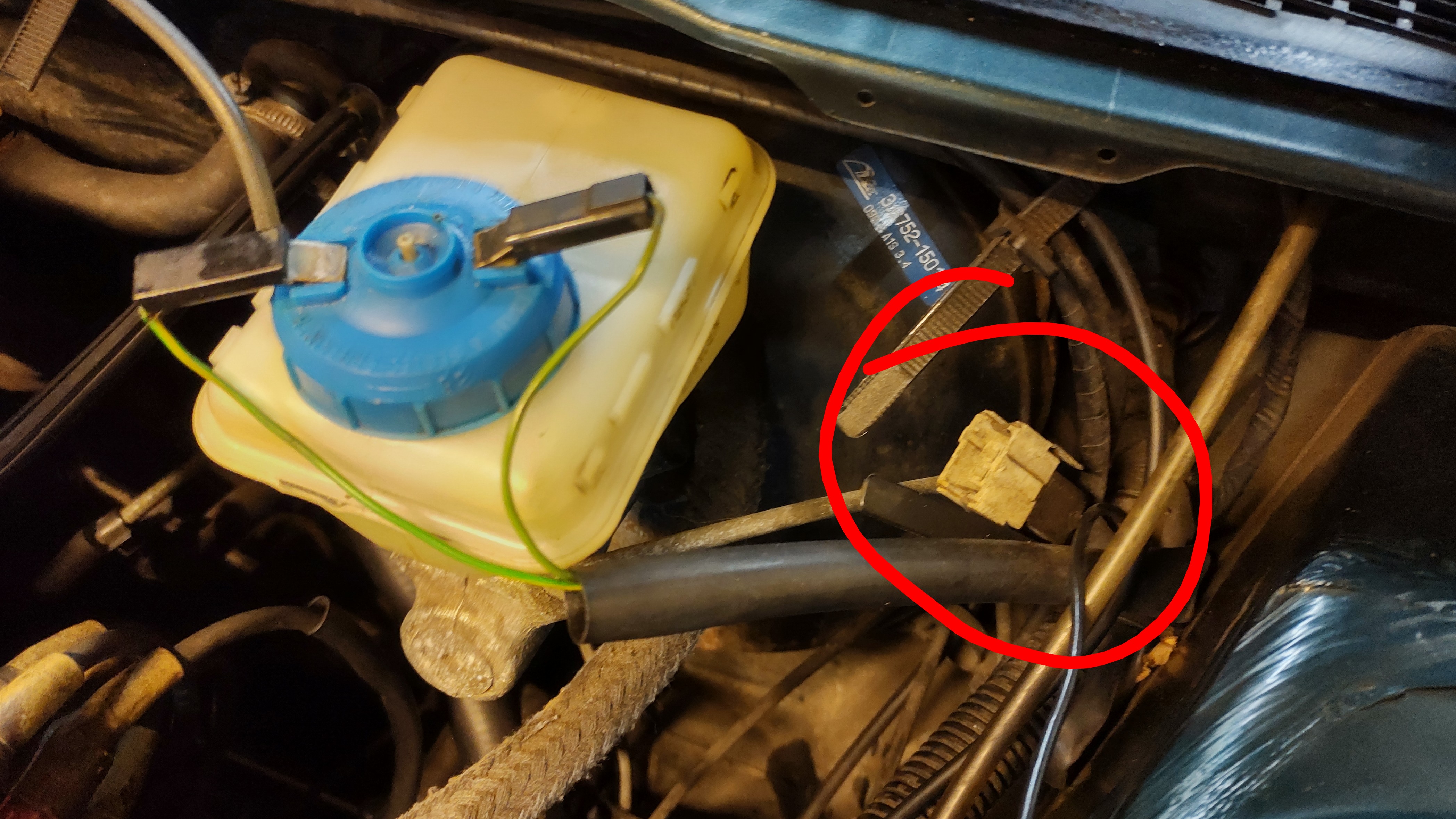 1. kommt zwischen Motor und Spritzwand von ganz tief unten hoch, graues Kabel, brauner Stecker, drei Adern und Kontakte. Bei mir schon ziemlich zerbröselt. Kabel macht bestimmt schon Kurzschluss zwischen zwei Adern. Motor läuft aber, keine Fehlermeldungen: