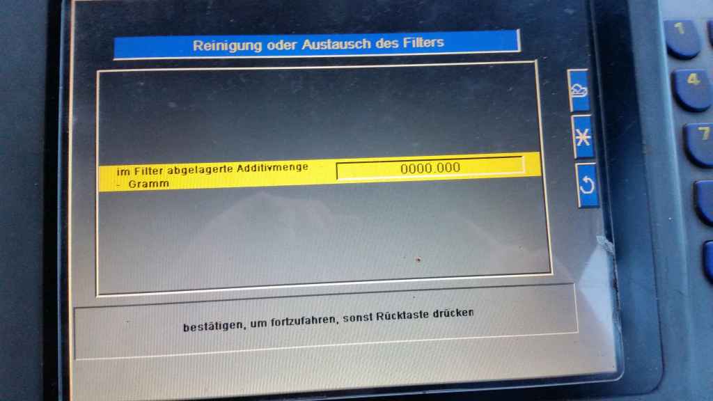 Ich habe evtl. noch eine andere Vermutung: Wenn ich im DIAG den Punkt "Nullrückstellung des Parameters Additiv - Gesamtmenge" wähle, muss ich irgendwann die "im Filter abgelagerte Additivmenge - Gramm" angeben. Was soll das an dieser Stelle, das habe ich bei Austausch des Additivsteuergeräts auf "0" gesetzt, vorher war die angezeigte Menge 93,15g?! Kann es sein, dass dies eine grottenschlechte Übersetzung ist und ich hier die eingefüllte Menge an Additiv eingeben muss? Immerhin muss ich beim Funktionstest des Tankdeckelsensors auch den Deckel Bremsflüssigkeitsbrhälters auf und zu machen...