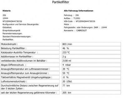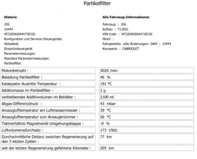 Aber ich kam auf den Punkt "Wartung Partikel Filter" und dachte da könnte ich ggf was sehen oder auslesen.