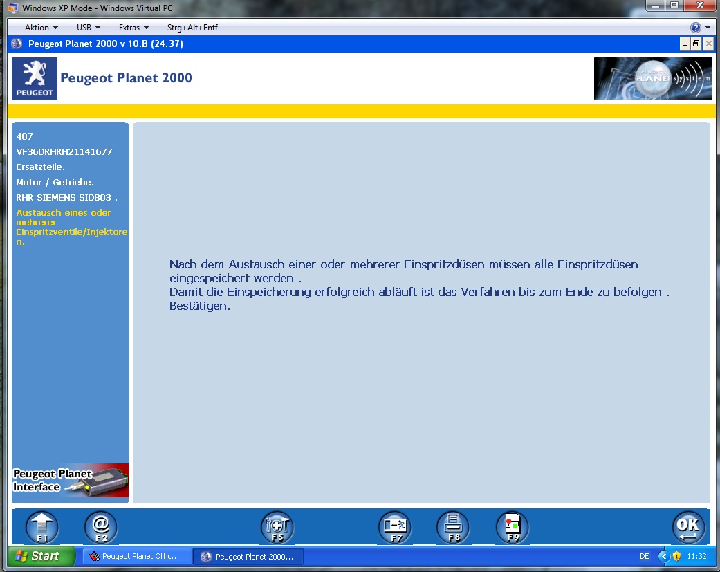 Ich glaube , Motor-Einspritzeinheit, Austausch eines oder mehere Einspritzdüsen, dann Enter Enter ,nur ich komme nicht da hin wo man die Nr. eingibt.