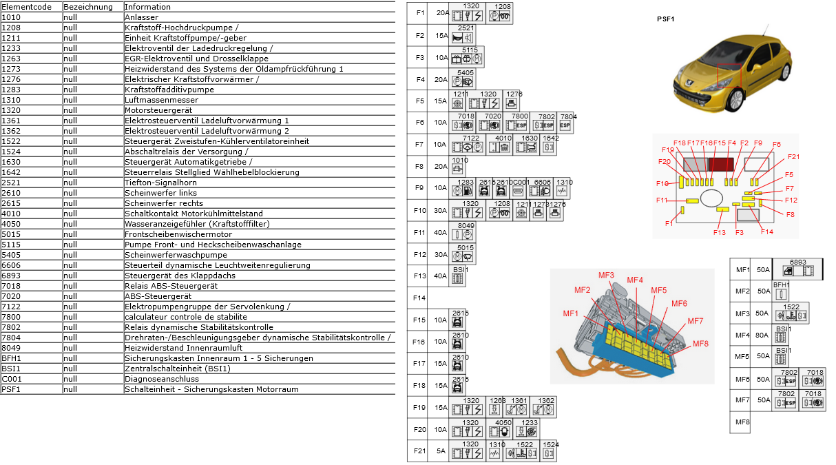 Sicherungskasten Motorraum, Sicherung F1 , F5 , MF03 und MF07 OK ????