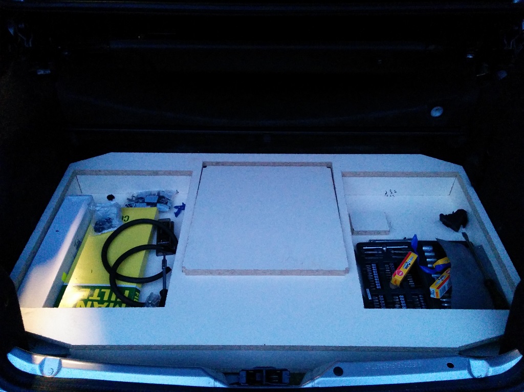 Die 2 anderen Fächer sind für Verbandkasten usw. Geht sich alles aus soweit.