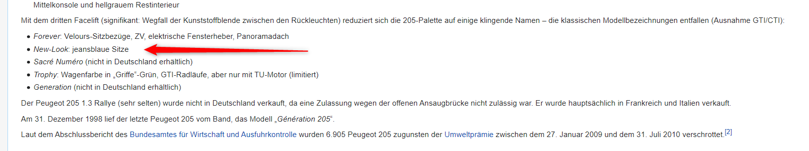 Bist du dir da sicher dass es vom Importeur ist? Ich hab nämlich sogar das original Prospekt vom 205 New Look und einen Auszug aus Wikipedia.