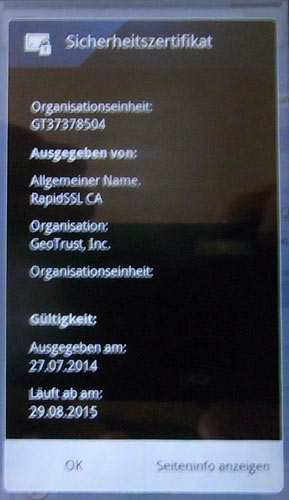 bis gestern kam immer diese warnung - unter infos stand dann, das angegebene zertifikat sei zum 25.08. ausgelaufen.