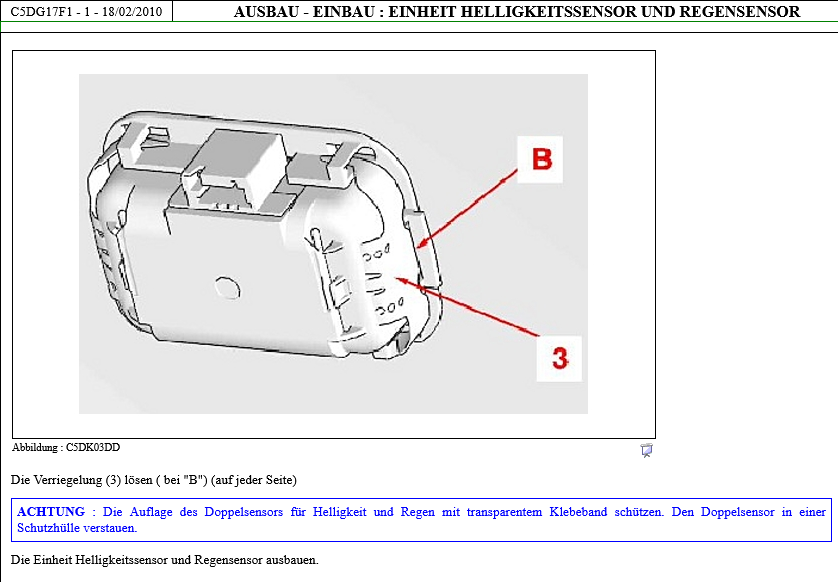 Gelpad braucht man nicht. Die Verriegelung vom Helligkeitssensor und Regensensor rechts und links lösen, abnehmen.