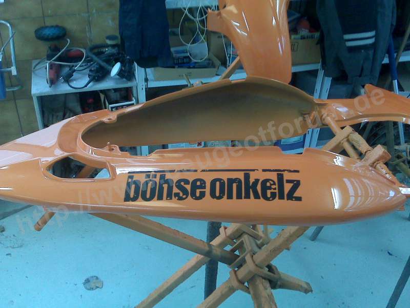 ?berholtes Unfallmotorrad in Ford ST Orange und B?hse Onkelz Schriftz?ge einlackiert... =o)