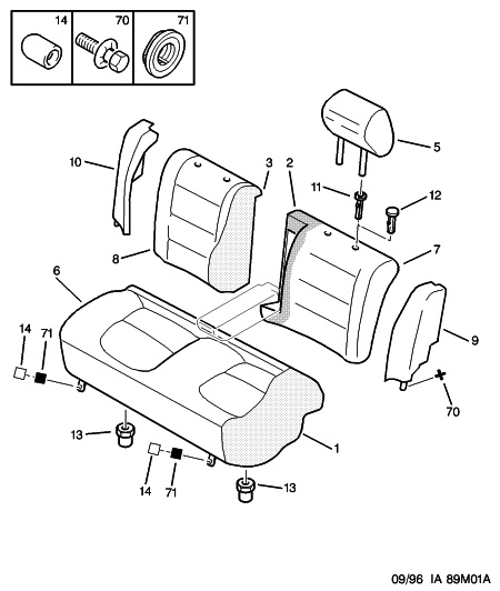 bei der limousine müssen zwei muttern (71) unter einer abdeckung (14) raus, dann sollte es gehen.