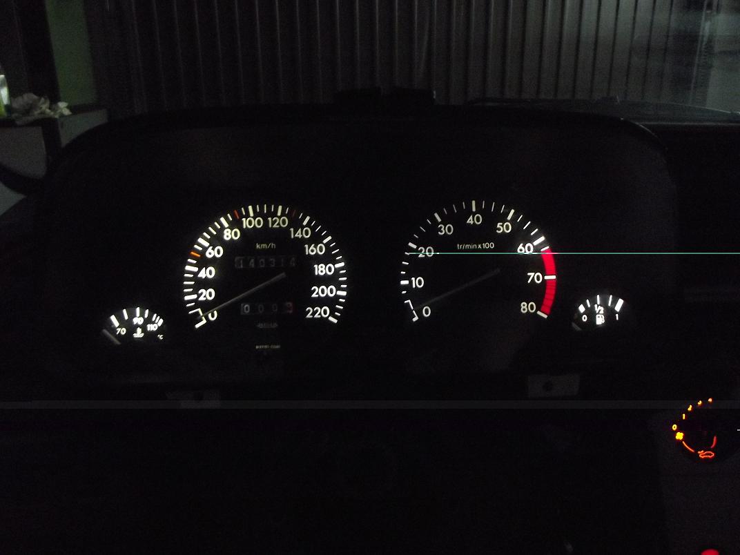 Im hellen leider nicht so gut zu sehen. Im Dunkeln ist dech Tachostand schlecht zusehen, aber die Ausleuchtung ist bzw. war Perfekt, die helligkeit ist etwas dunkler als beim Serienzustand. Diese Methode klappt ohne den gelben Lack auf den Scheiben zu entfernen. Man kann ja bei Original Birnen ja mit der Farbe experimentieren!