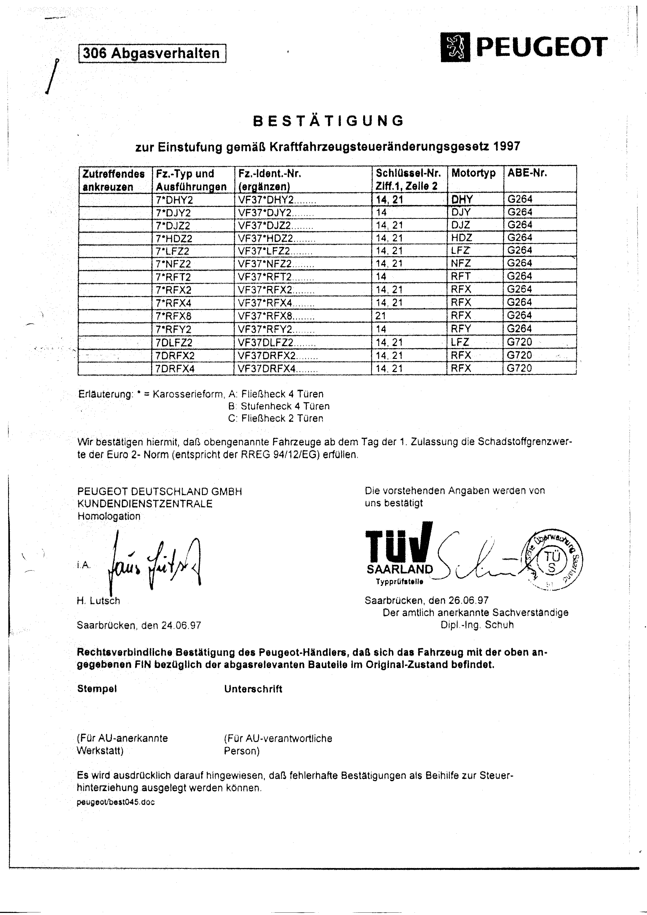 Hier reichte eine Bescheinigung vom Hersteller für die Umtragung auf Euro 2.