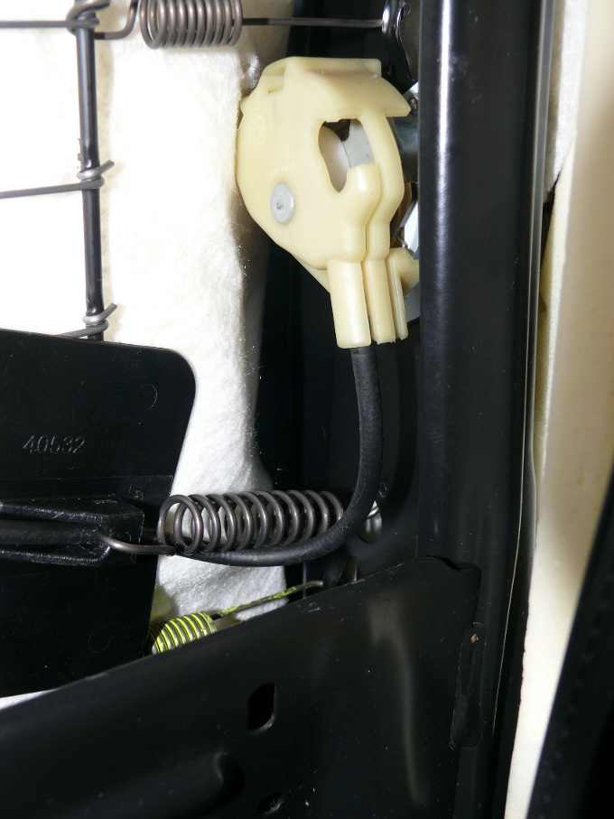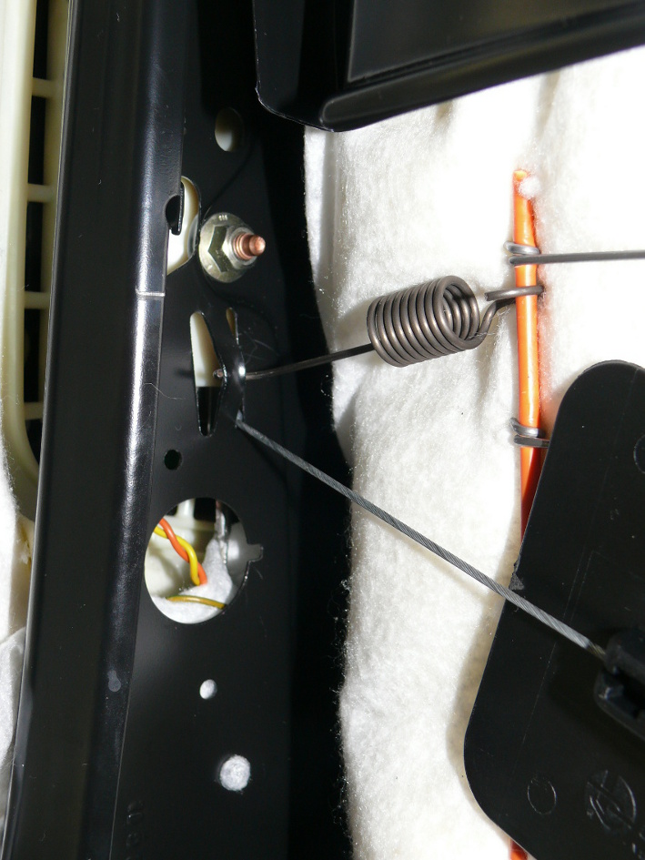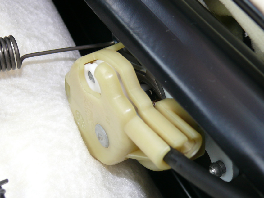 Allerdings (und bevor ich feststelle, ob irgendetwas kaputt ist) möchte ich besonders gern wissen, wo das linke Ende des Bowdenzugs genau festgemacht wird (das mit dem [Mikro]kugelförmigen Ende [s. Bild01]).