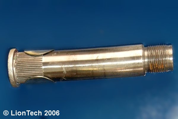 Spiel in den Lagern kannst mit blosser Handkraft kaum feststellen, soviel Kraft bringt ned mal Arnie auf. Wenn es mit Handkraft feststellbar ist, isses Kernschrott. Verbiegen kannst die Achse völlig easy, einmal seitlich an den Randstein geschlittert - bäng. Dann verbiegt sich der Radnabenbolzen, schaut dann so aus: