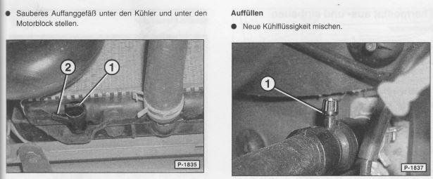 dort Kühlmittel austritt. Achtung: Kühlmittel langsam