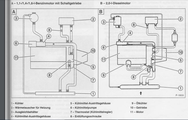am Kühler 1/4 Umdrehung öffnen. Lage der Entlüftungsschrauben,
