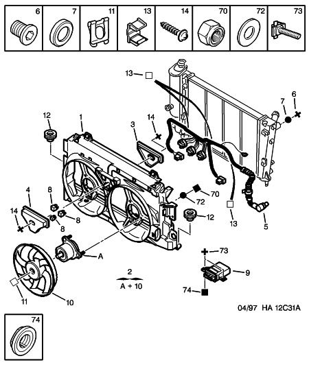 die sind vorne zwischen den lüftern in ner dreieckigen box. ich meine ich hätte damals den kühler nach hinten geklappt um dran zu kommen.