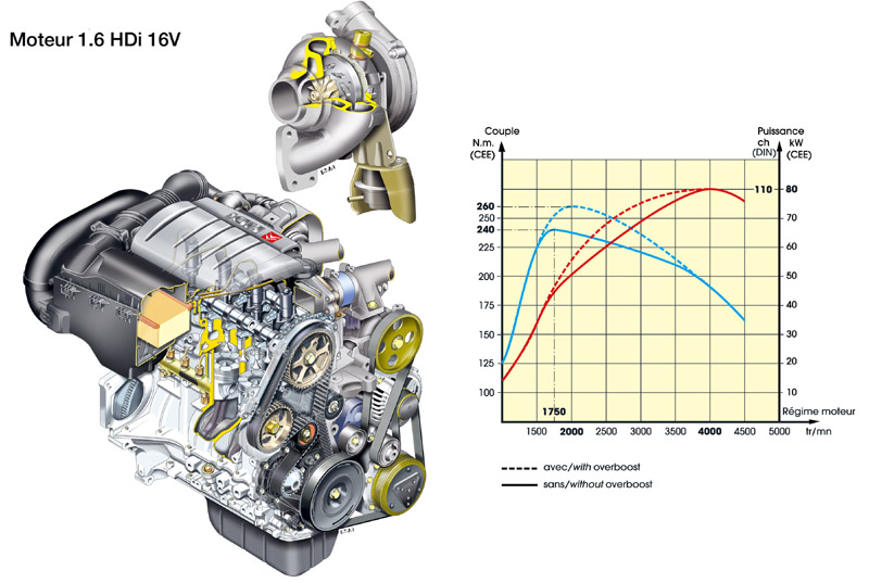 Anbei mal eine Leistungskurve vom 1.6L HDI Motor die ich im Web fand und danach mein Leistungsprüfstandslauf.