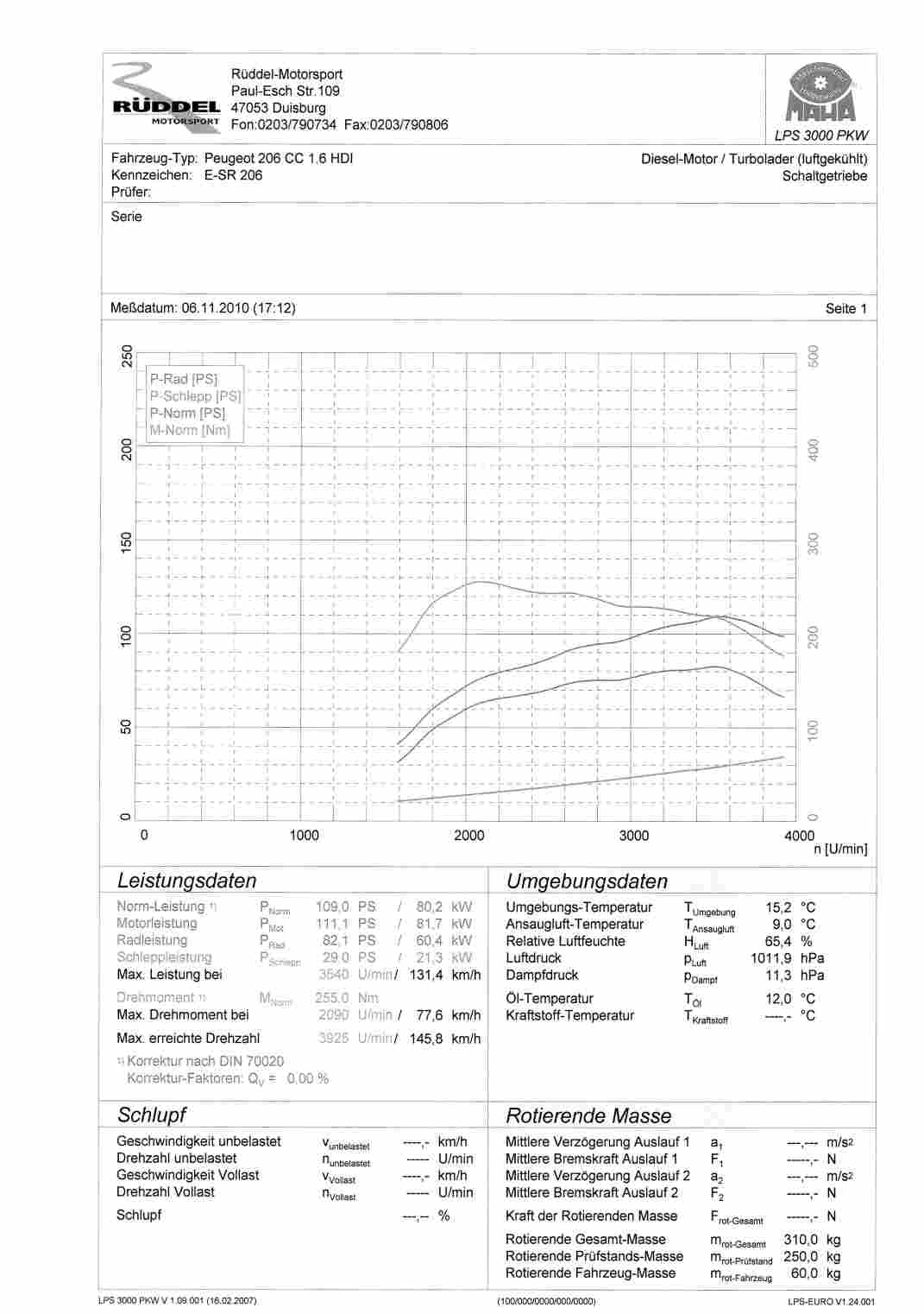 Dort haben wir im 4.ten Gang 111.2PS und 255nM gemessen (109PS und 245nM Vorgabe)