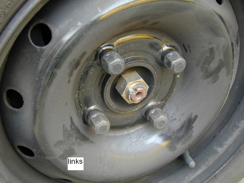 Die rechte Mutter wie auch der Antriebswellenstummel ist um einiges kürzer wie die linke, die beim neuen Radlager beigefügte Mutter konnte ich somit auf der rechten Seite nicht verwenden.