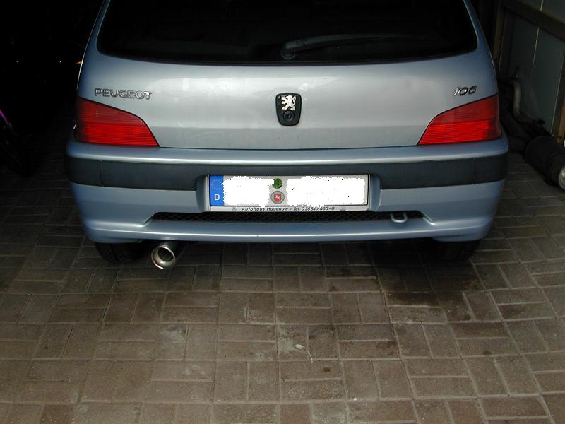 bei unserem 2001er 106 mit 60 PS rostet das Mittelrohr durch. Wir haben uns deshalb entschieden gleich einen IMASAF Sport Endtopf und ein Eberspächer Mittelrohr neu einzubauen. Bei dem neuen Mittelrohr fehlt allerdings ein Aufhängungshalter vor der Hinterachse