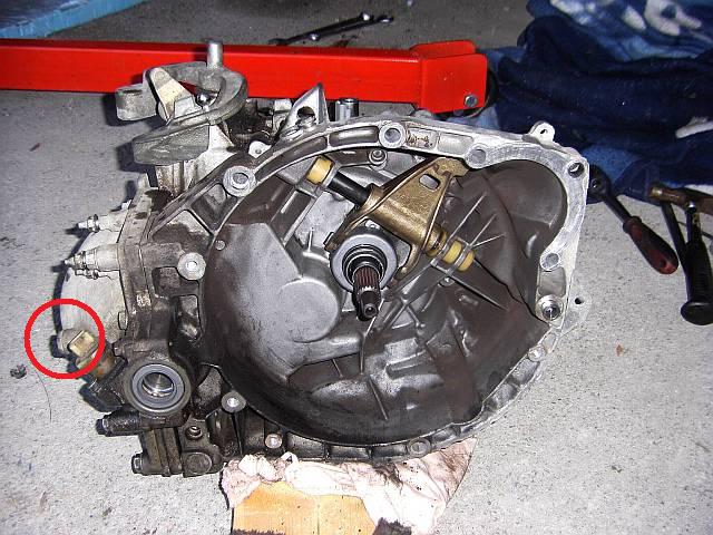 Einfüllen ist ein bisschen knifflig, weil die Füllschraube besch...en zu erreichen ist. Die sitzt am Differentialgehäuse etwas nach rechts zum Motor versetzt und zeigt zur Spritzwand, siehe den Kreis im Bild.