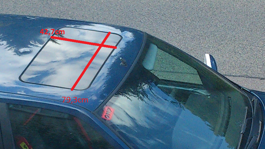 PS: Maße sind das ganze Schiebedach also von Kante zu Kante an der Karosserie und nach Bestem Wissen und Gewissen gemessen u. natürlich ohne Gewähr :D