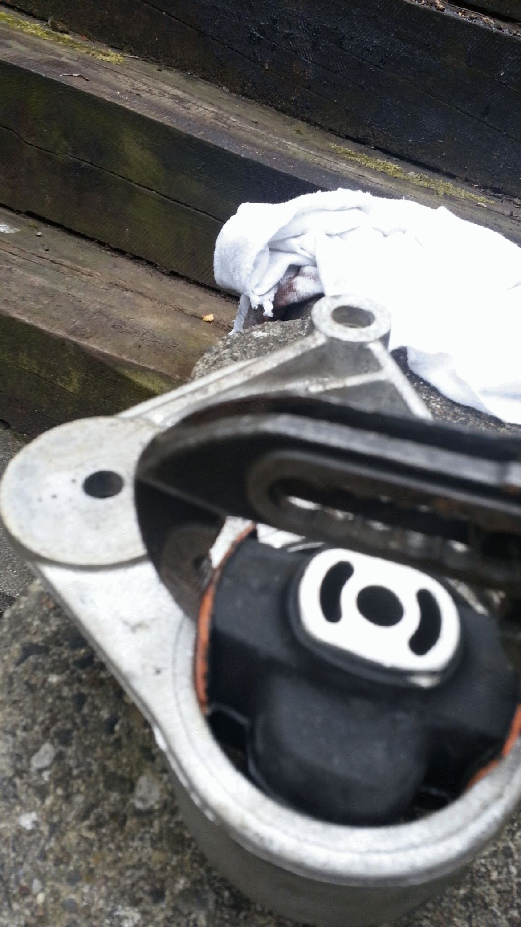 Der Gummi im Motorhalter war sehr stark eingerissen, was ein Zeichen dafür ist das der Gummi unter dem Halter defekt ist.