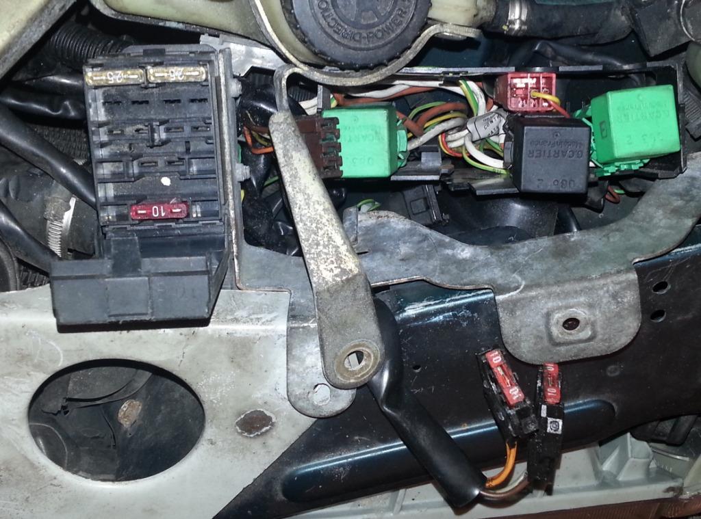 hier kam der strom an, also habe ich mal beim zündmodul geschaut, ob dort was ankommt, und ja, da kam auch was an, dann hab ich die zwei 10er sicherungen getestet die hinter dem linken scheinwerfer lagen, die waren auch in ordnung!