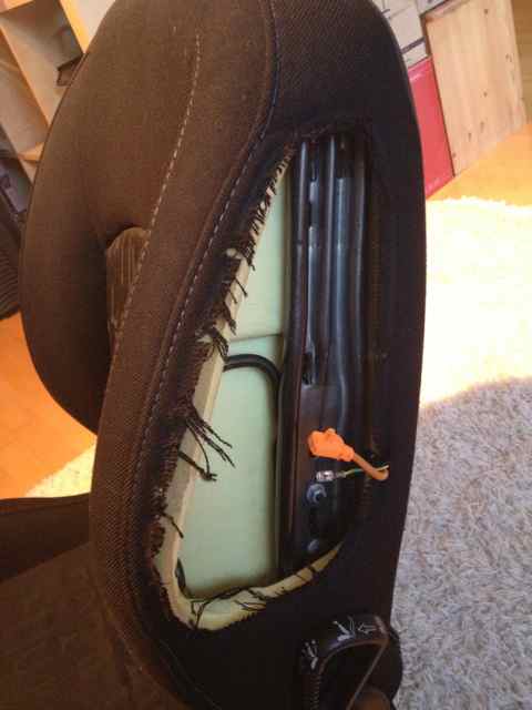 Am Fahrersitz ist der Stoff um den Airbag ist etwas ausgerissen - ich leg aber einen orginalen Sitzbezug drauf der noch kein Loch am Airbag hat. Wenn man also etwas nähen kann, kriegt man hier wieder einen super Sitz zusammen.