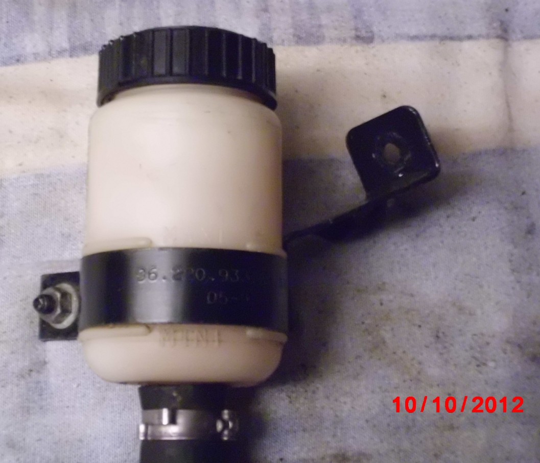 suche den kleinen runden Lenkhydraulikbehälter für Peugeot 106 einschließlich des Befestigungshalters.