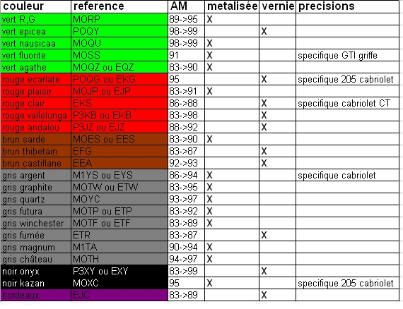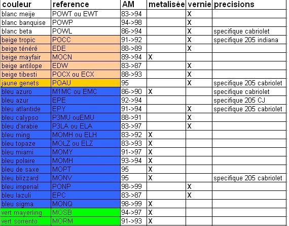 Farbe/ Code / Bj. / Matallic / nicht Metallic / genaue Typenrene1975 hat geschrieben:damit man net lang suchen muß,hier mal die Farb-Tabelle-für den 205er.