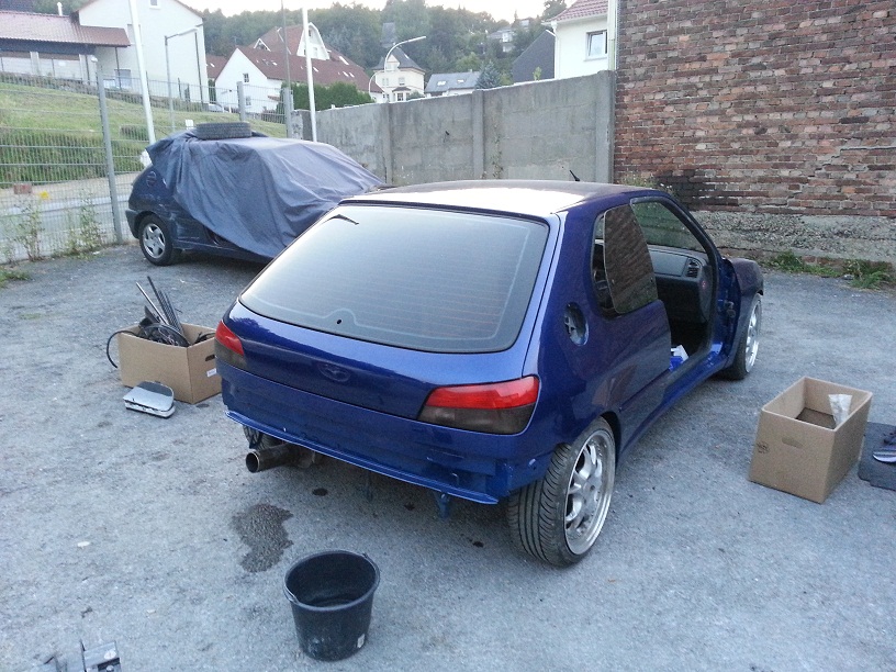 hat was, wobei ich nicht so auf helle a-bretter stehe. hier mal zwei pics von heute. scheiben sind drin. heckklappe dran und angeschlossen, kabel verlegt, a, b, c-säulen dran.
