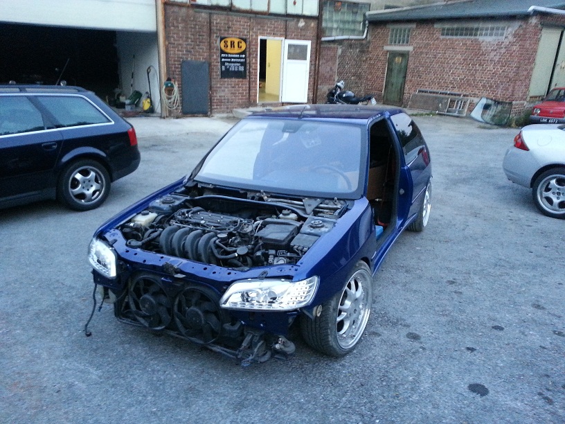 hat was, wobei ich nicht so auf helle a-bretter stehe. hier mal zwei pics von heute. scheiben sind drin. heckklappe dran und angeschlossen, kabel verlegt, a, b, c-säulen dran.