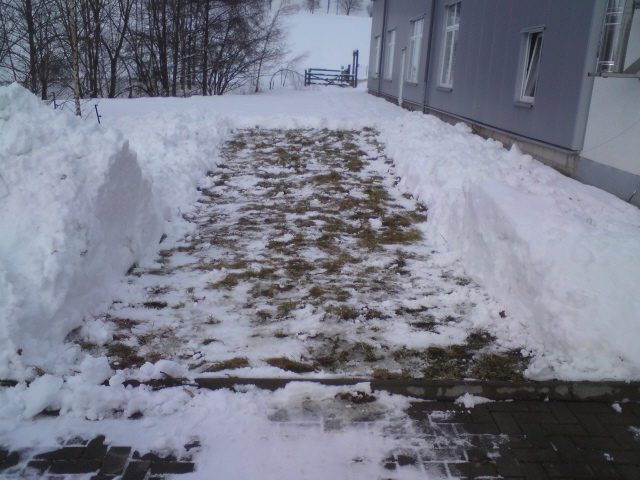 Rostiger: "wir machen den weg frei" :D ......bin nicht fertsch geworden, hatt dan angefangen zu tauen, hinterm gebäude ist ein Stall (überdacht und geschützt) da sollte der "Schinken" übern Winter rein(weil abgemeldet und Löwe) naja ich dachte der Winter ist da, und dann wieder +grade :traurig: ....interessant auch das ichs bis heute nicht gebacken bekommen hab den hinter zu schaffen :vorkopphau: .