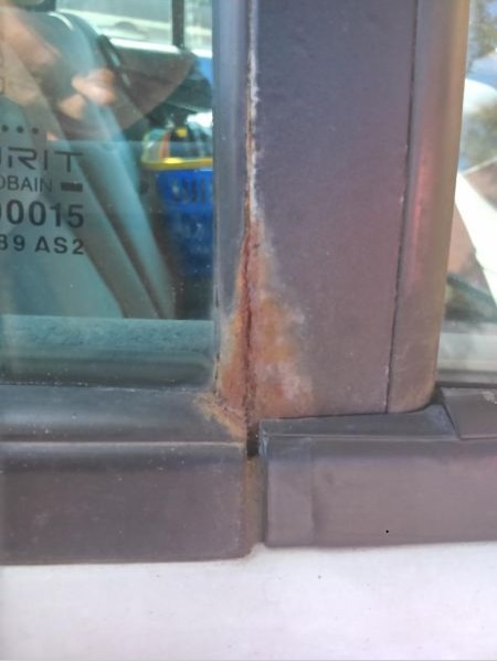 Problem ist, dass die Hinterachse durch ist und er an ein paar Stellen rostet (kritische Stelle am Fenster s.u.)