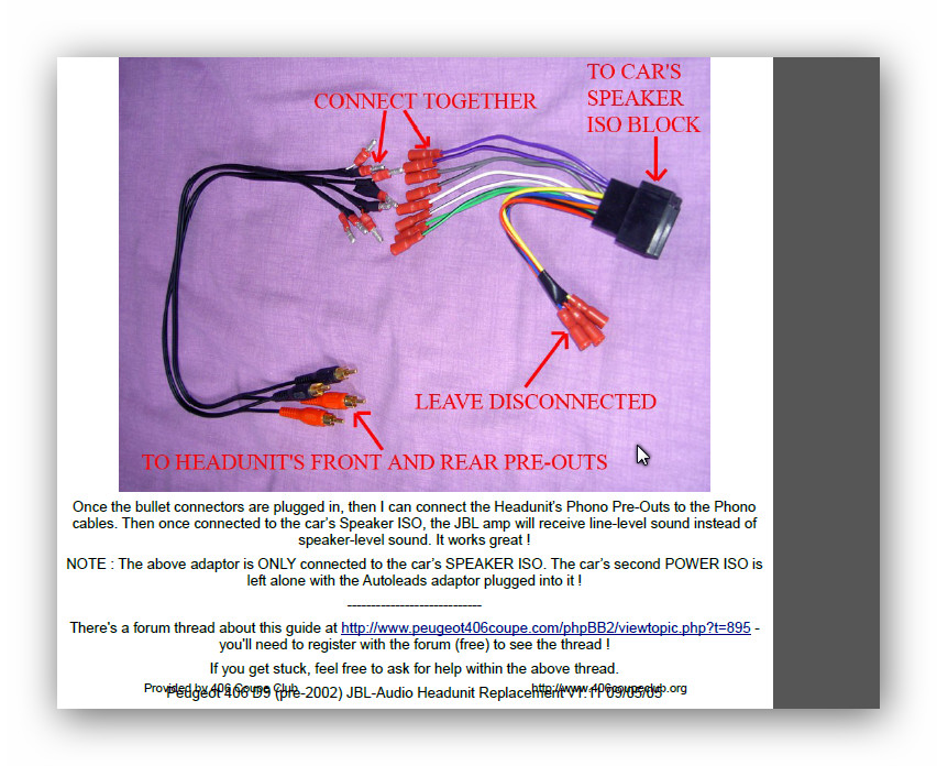Das Problem bei der JBL Anlage ist , daß diese mit den Vorverstärkerausgängen des Radios verbunden werden müssen , dort aber keine Cinchkable verlegt sind , sondern ein Adapter bebastelt werden muß . Es gibt aber einiges zu finden im Netz , und vor allem die Engländer haben gerade zu diesem Thema tolle Tutorils gemacht .. ich versuch mal ne Kostbrobe hier anzuhängen und hoffe , nicht gegen irgendwelche Urheberrechte zu verstoßen ....