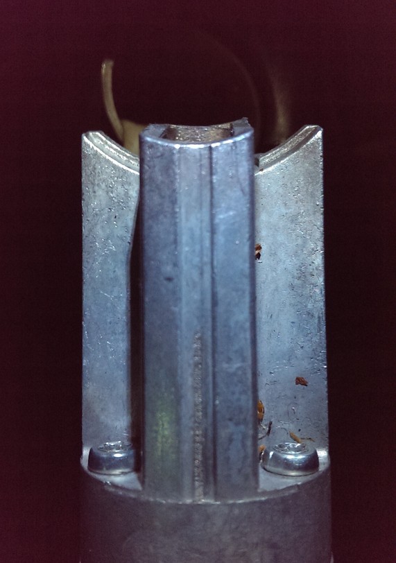 Die Vorderseite des Bolzens schaut auch schon sehr abgenutzt aus.