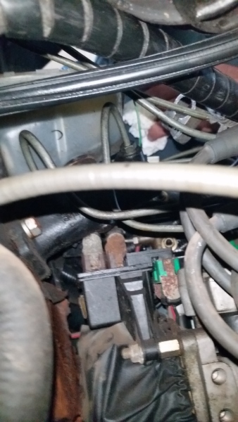 "Einen schwarzen Kasten auf den Domen gibt es nicht. Unter dem HBZ sitzt eine Schalteinheit mit Steckern dran aber keine Relais oder Sicherungen. Bislang habe ich die Einheit dem ABS zugeordnet. Habs von vorne (Bild 1.) und vom Krümmer (Bild 2.) aus mal fotografiert."