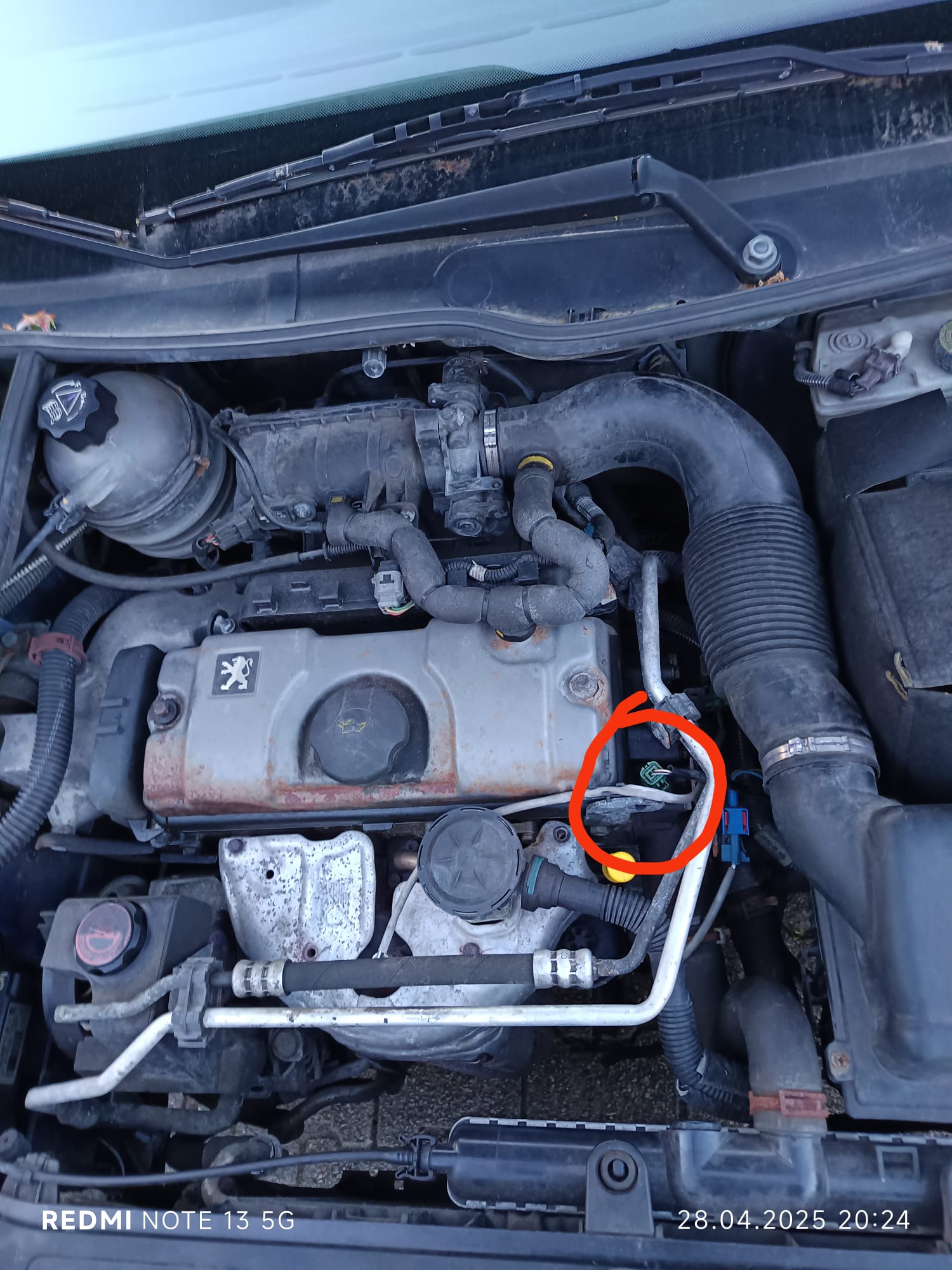 Die Temeraturanzeige steigt normal bis auf 85 Grad, dann macht die Anzeige einen Satz in Richtung rote Azeige, die Warnlampe "Stop" geht an. Das Kühlergebläse schaltet sich ein, es laüft ca 15 Sekunden, schaltet sich aus und der Temperaturanzeiger geht wieder auf normale 85 Grad. Sollte auch der Temeraturfühler (grüner Stecker) am Motor defekt sein? Ist es der eingekreiste auf dem Bild?
