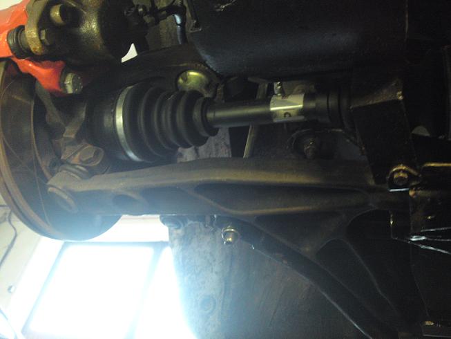 im serientrim steht die welle etwas nach unten. mit handelsüblichen tieferlegungen steht sie fast gerade (wird also eher gestaucht - was aber egal ist, beim einfedern würde sie das so oder so) und mit extremen tieferlegungen steht die welle etwas nach oben, also quasi wie serie, nur zur anderen seite.