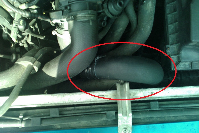 ( im Bild die zwei Schläuche unter dem Peugeotlogo)