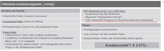 Ich habe es total falsch verstanden. Ich dachte USB ist "Standard" beim Family und alle anderen Extras sind Add-on.