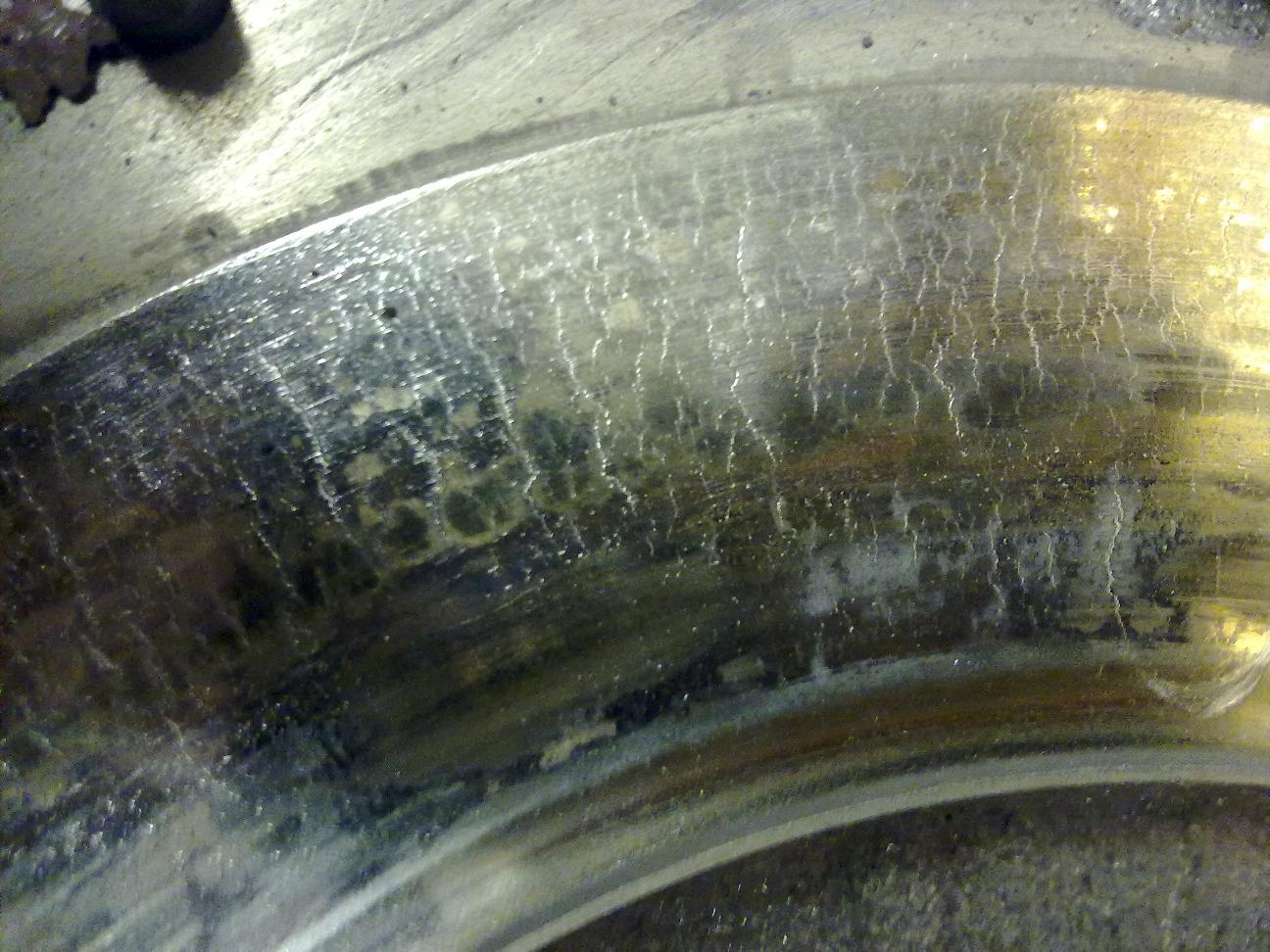 Och die is bissel eingelaufen. Würd die abdrehen oder mit schleifpapier abziehen bis wieder ne glatte Fläche rauskommt.die Risse sind wahrscheinlich nur oberflächig.