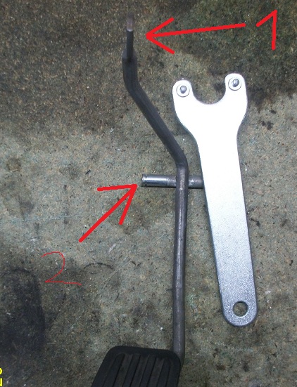 Bei 2 ist an den Enden so ein Blechteil drauf was das seitliche verrutschen verhindert. Die wegmachen und du kannst das Pedal ausbauen.
